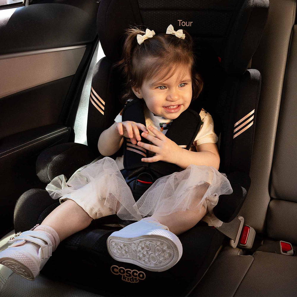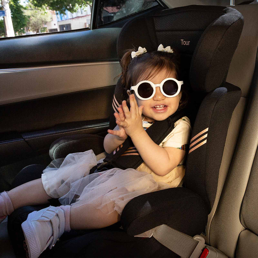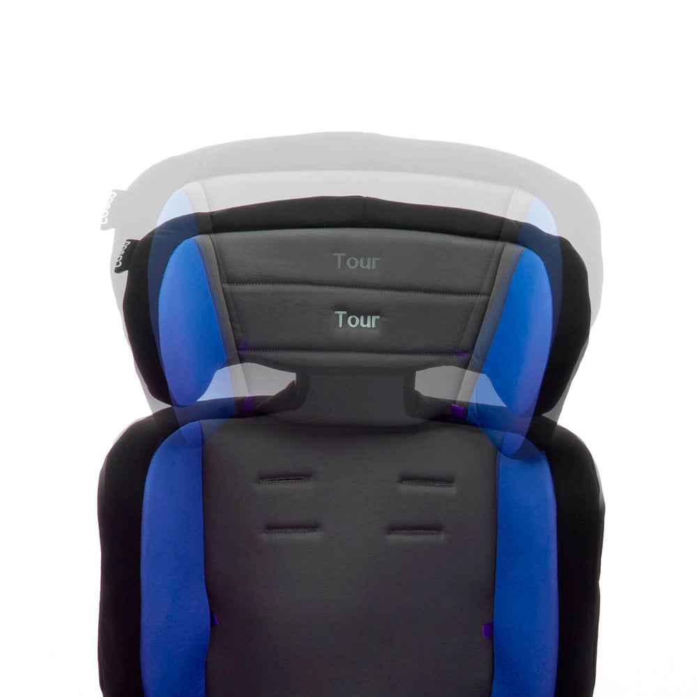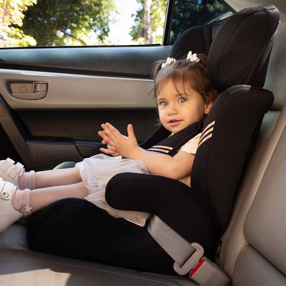 Cadeirinha que acompanha o crescimento da criança, redutores reposicionáveis para os menores, apoio de cabeça ajustável em altura e assento de elevação para os maiores. Capa da cadeira lavável.