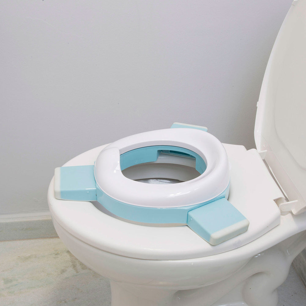Inovador com duas funções: como um penico ou redutor para vaso sanitário. Totalmente dobrável e compacto, cabe na bolsa ou mochila do bebê. Pronto para tudo!